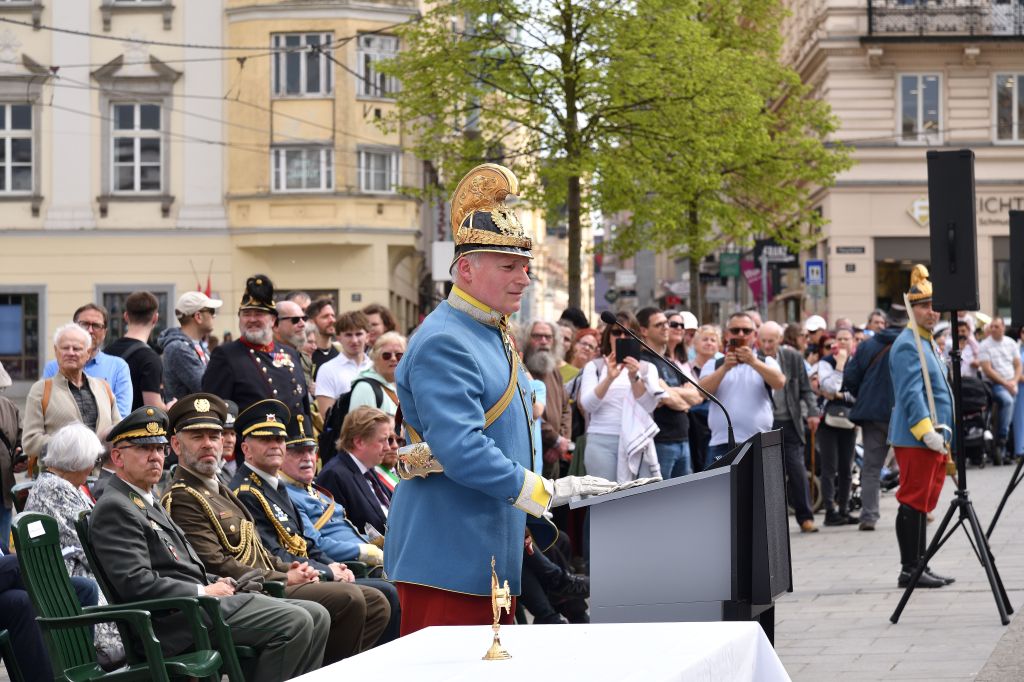 Es folgte die Ansprache des Kommandanten des Dragonerregiments 7, Major iTR Alexander Sascha Eckhardt, MBA, der die Bedeutung von Tradition, Kameradschaft und historischer Verantwortung hervorhob. Grußworte wurden zudem vom stellvertretenden Kommandanten der HUAK, von zwei Linzer Gemeinderäten sowie vom Landtagsabgeordneten Michael Nell überbracht.