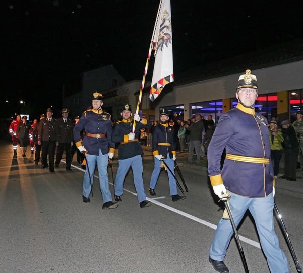 Im Anschluss an die Ansprachen befahl der Gesamtkommandierende zur Kranzniederlegung, die mit dem Lied des guten Kamerads umrahmt wurde. HAMMERER, Lt. iTR führte den gesamten Truppenkörper vor das Denkmal und den Ehrengästen zur Defilierung. Danach wurde das Gesamtkommando dem Kompaniekommandanten übergeben. SCHATTLEITNER, Olt. iTR führte die Musik und alle Uniformierten zur Stadtpfarrkirche, in der von Militärkurat Mag. FREITAG eine Messe abgehalten wurde. Diese wurde wiederum von der MMK Feldkirchen bei Graz musikalisch in Form der Deutschen Messe umrahmt. Die Fürbitten wurden in den Sprachen Deutsch, Polnisch, Ungarisch und Kroatisch gelesen. Der kameradschaftliche Ausklang fand im Gösser Bräu Graz statt.