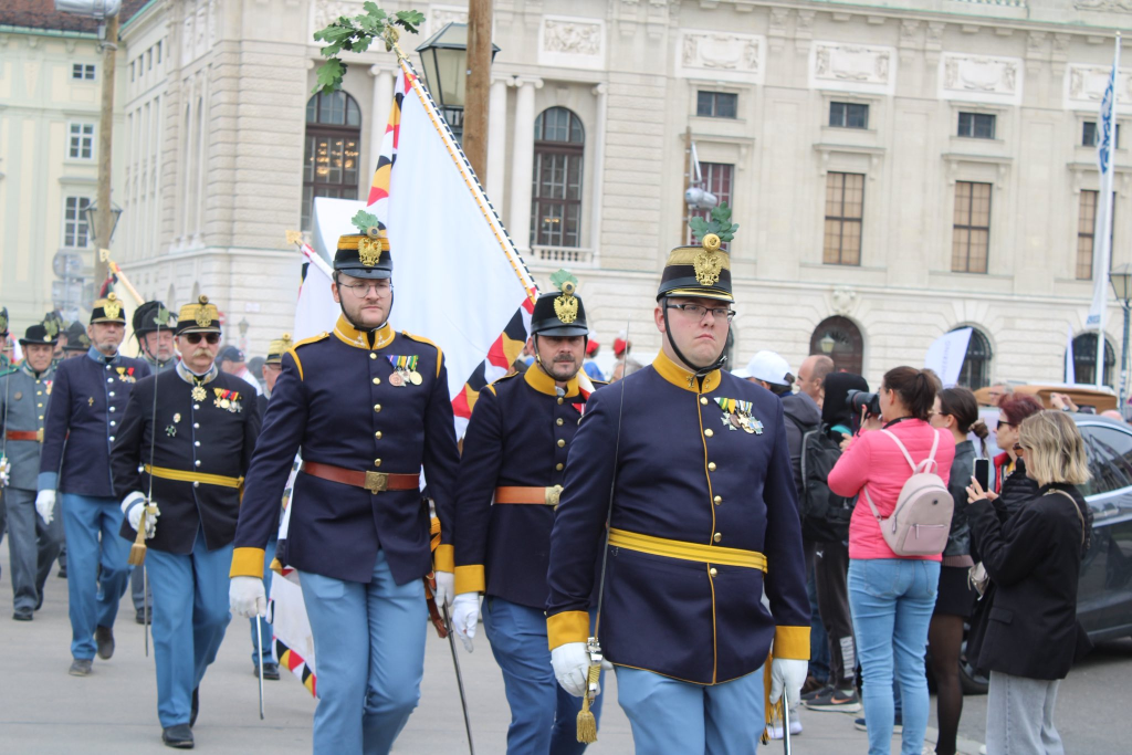 Unter strahlendem Himmel traten um 13:45 Uhr die anwesenden Regimenter und Formationen an. Punkt 14:00 Uhr erfolgte der Abmarsch und die feierliche Aufstellung vor dem Prinz-Eugen-Denkmal. Gemeinsam mit traditionsreichen Einheiten – darunter das k.u.k. Infanterieregiment Nr. 99, das k.u.k. Infanterieregiment Nr. 49, das k.u.k. Dragonerregiment Nr. 2, die Tiroler Kaiserjäger sowie die k.u.k. Gendarmerie – bildete sich ein imposantes Bild vergangener Militärgeschichte.